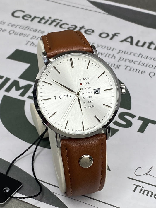 TOMI T-019 Classic Design Round Dial Straps Watch With Date & Day Display For Men