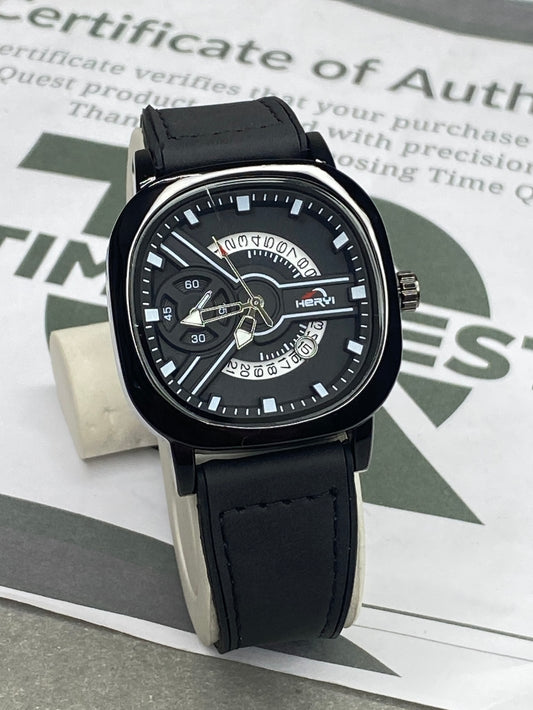 HERYI Men's Square Dial Analog Quartz Movement Straps Watch With Date Display