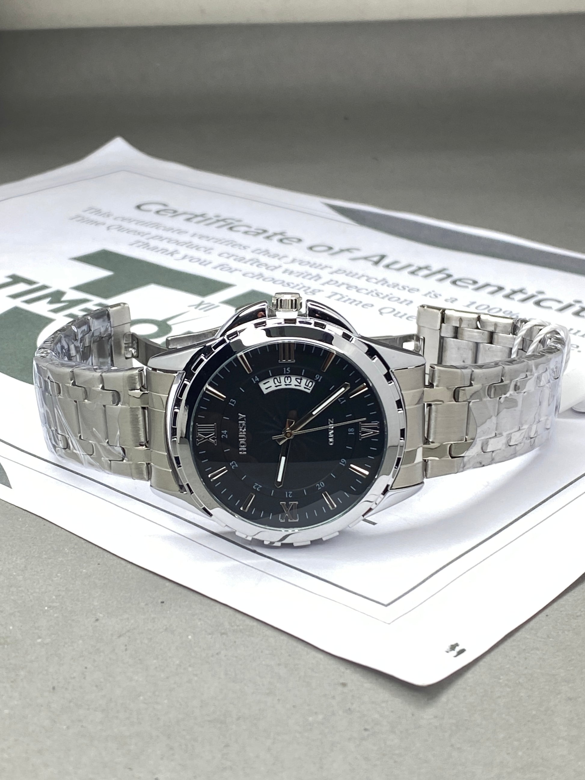 HOURSLY Analog Quartz Round Dial Premium Stainless Steel Chain Watch With Date Display