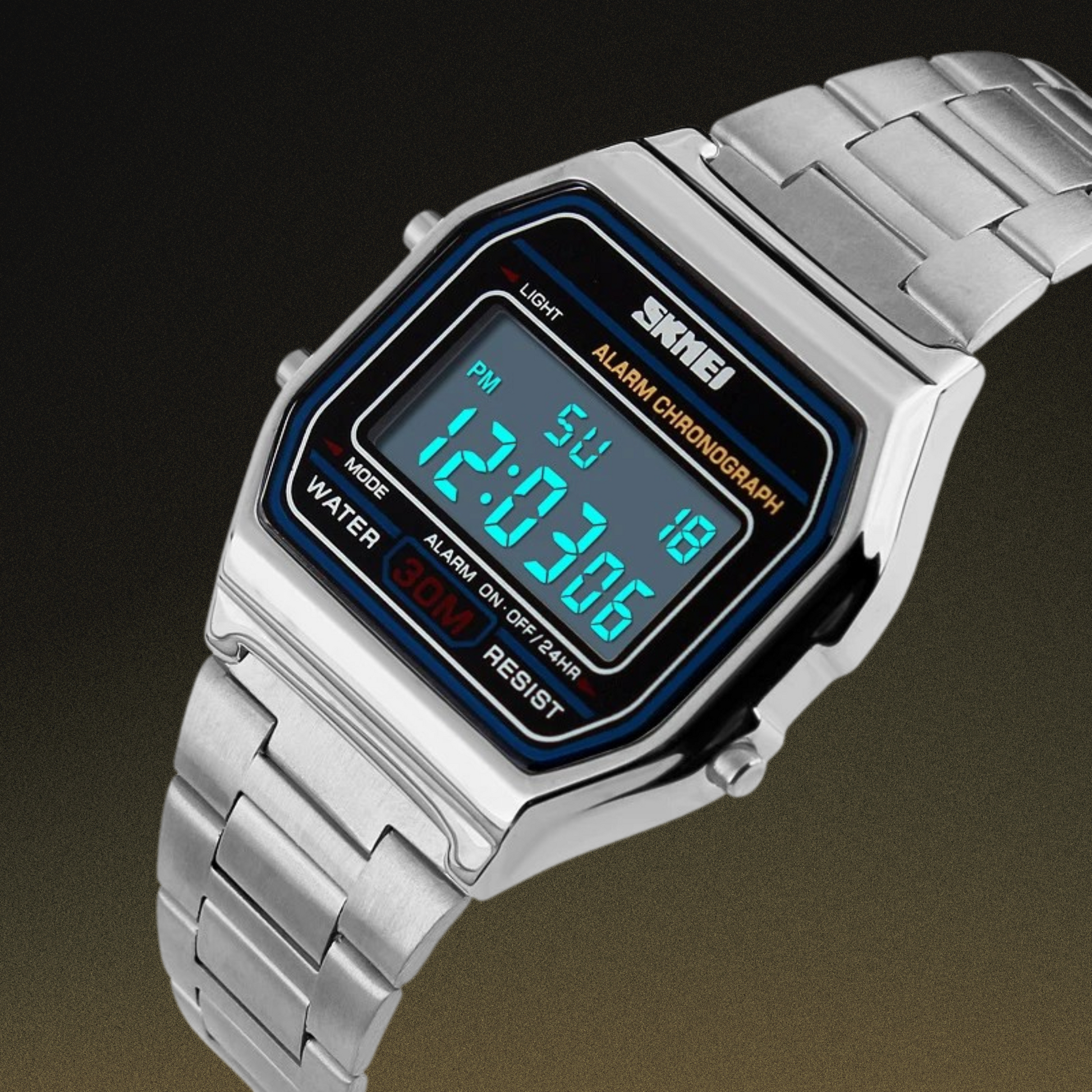 SKMEI-1123 Digital Time Format Stainless Steel Made Water Resistant Watch For Men